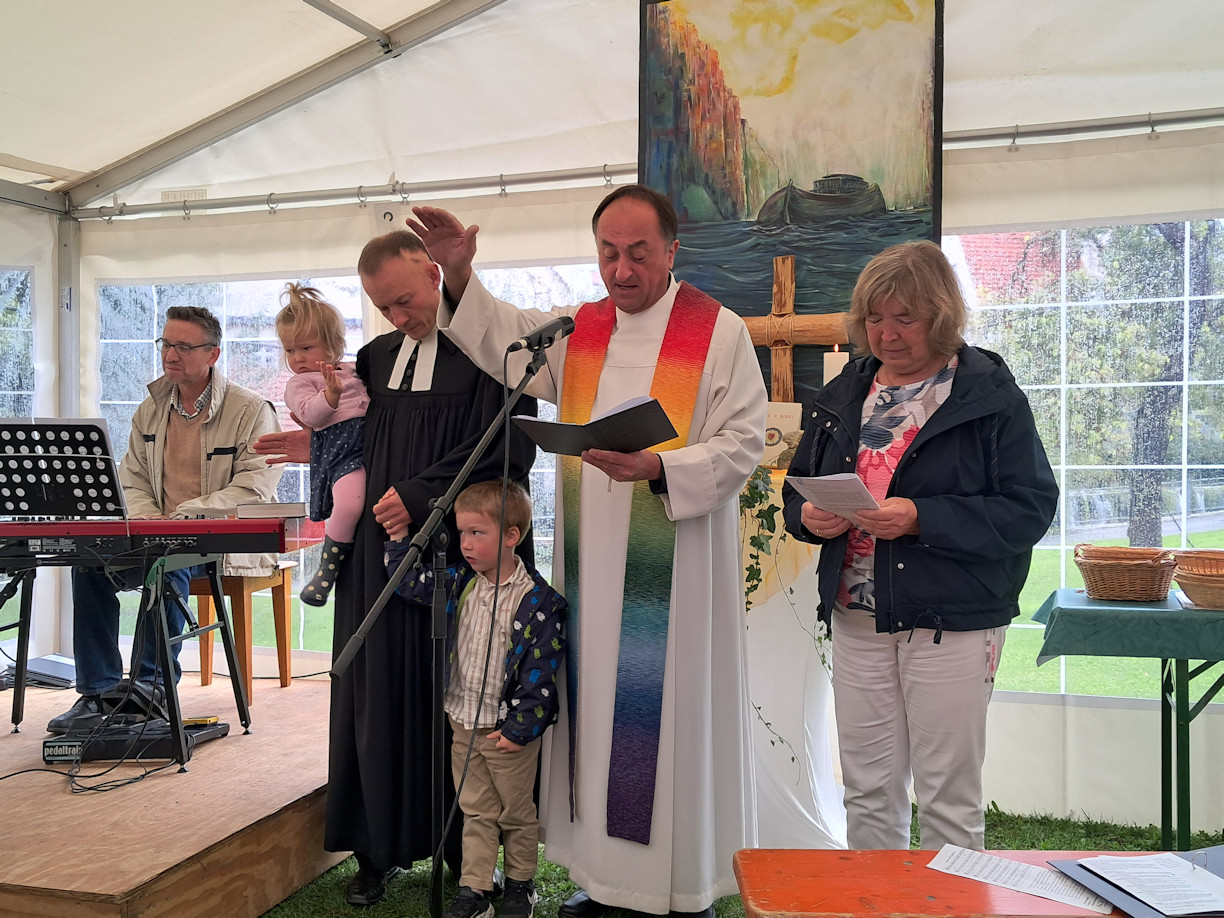 Christoph Pascher (mit seinen Kindern) und Dekan Hermann Friedl